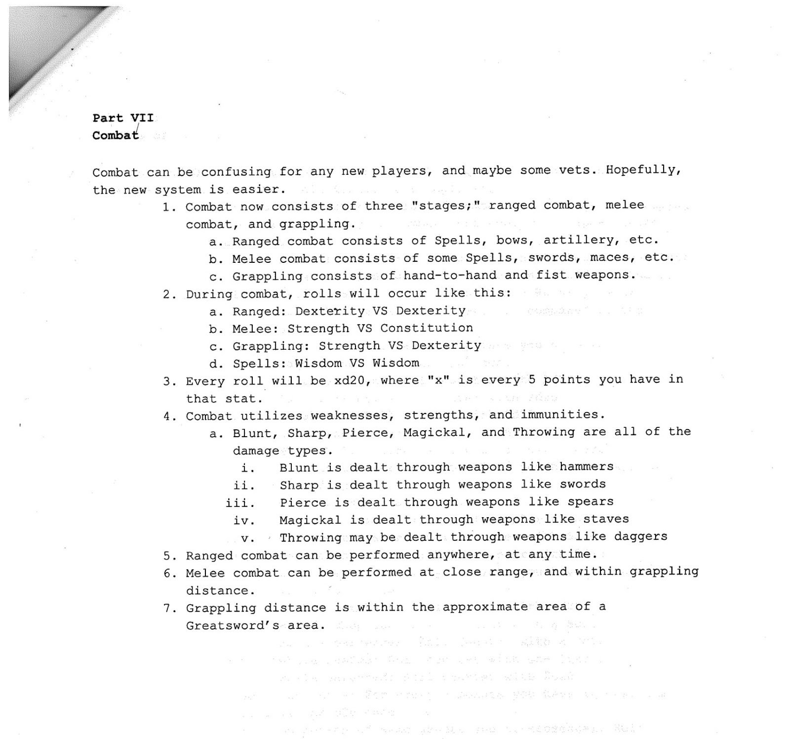 VII-4: Okay, five damage types. "Blunt, Sharp, Pierce, Magickal" make sense... but throwing? "Throwing" is it's own damage type? Why not just have thrown weapons deal one of the first three types, ehhh?