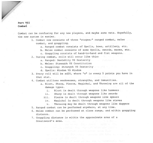 The story in short: my girlfriend briefly played in a "D&D" group during college (she is now in grad school on a full ride scholarship). The following 17-page printout is the rules she was given.